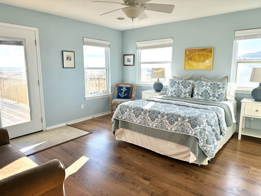 This home has amazing views of the beach, and the windows in the main living space really allow you to embrace the beauty of the beach and the dunes. The waves are visible from inside the house and from the second floor deck.